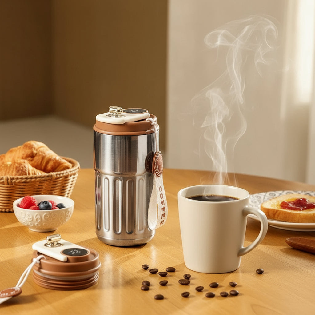 Dotée d’un écran digital tactile sur le couvercle, elle affiche instantanément la température du liquide à l’intérieur — fini les gorgées brûlantes ou trop froides !